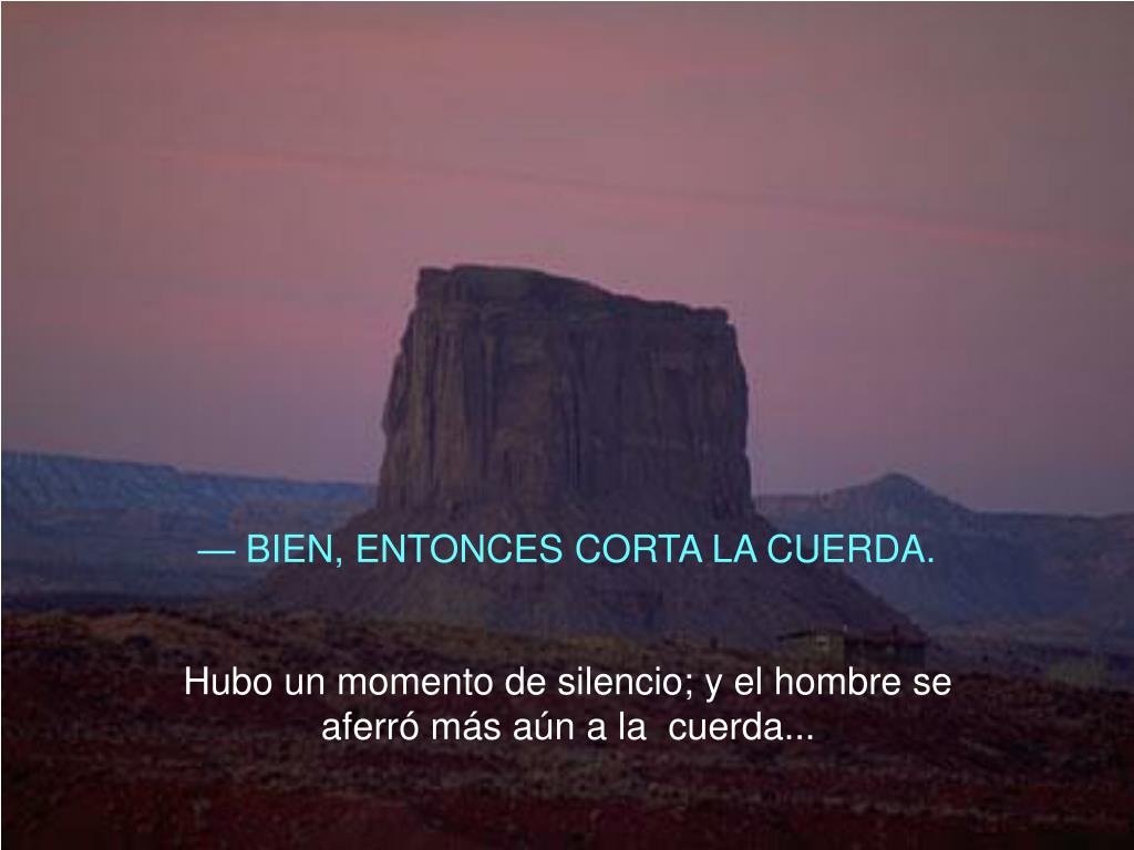 — BIEN, ENTONCES CORTA LA CUERDA. Hubo un momento de silencio; y el hombre se aferró más aún a la cuerda...