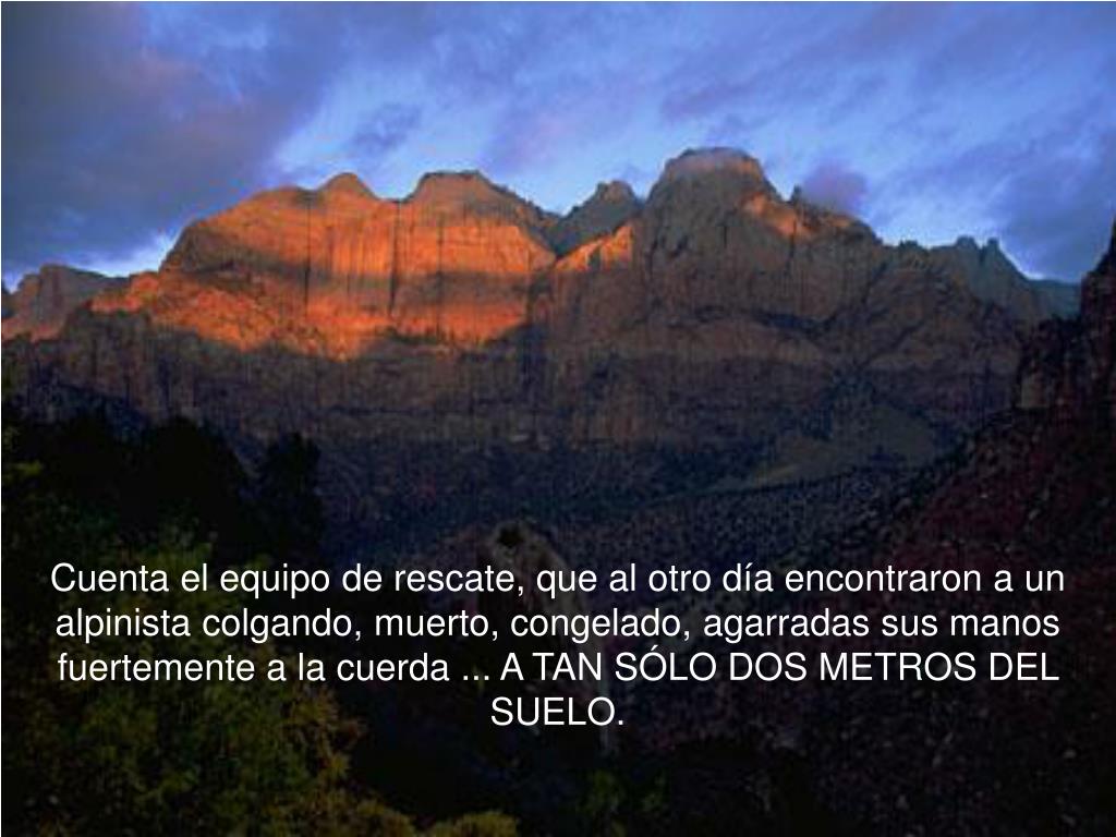 Cuenta el equipo de rescate, que al otro día encontraron a un alpinista colgando, muerto, congelado, agarradas sus manos fuertemente a la cuerda ... A TAN SÓLO DOS METROS DEL SUELO.