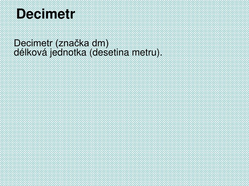 Decimetr • Decimetr (značka dm)délková jednotka (desetina metru).