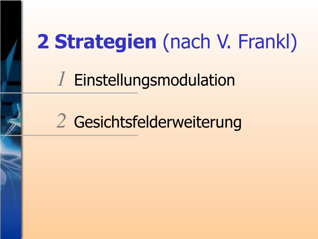 2 Strategien (nach V. Frankl) 1Einstellungsmodulation 2Gesichtsfelderweiterung