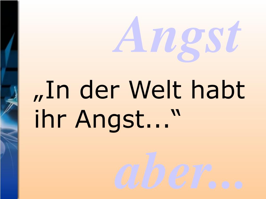 aber... • „Du lässt mich erfahren viele und grosse Angst, doch du machst mich wieder lebendig und holst mich wieder herauf aus den Tiefen der Erde. Du gibst mir neuen Wert und tröstest mich.“ Psalm 71,20-21 • „Wenn du durch Wasser gehst, so will ich bei dir sein, dass dich die Ströme nicht ersäufen sollen.“ Jesaja 43:2