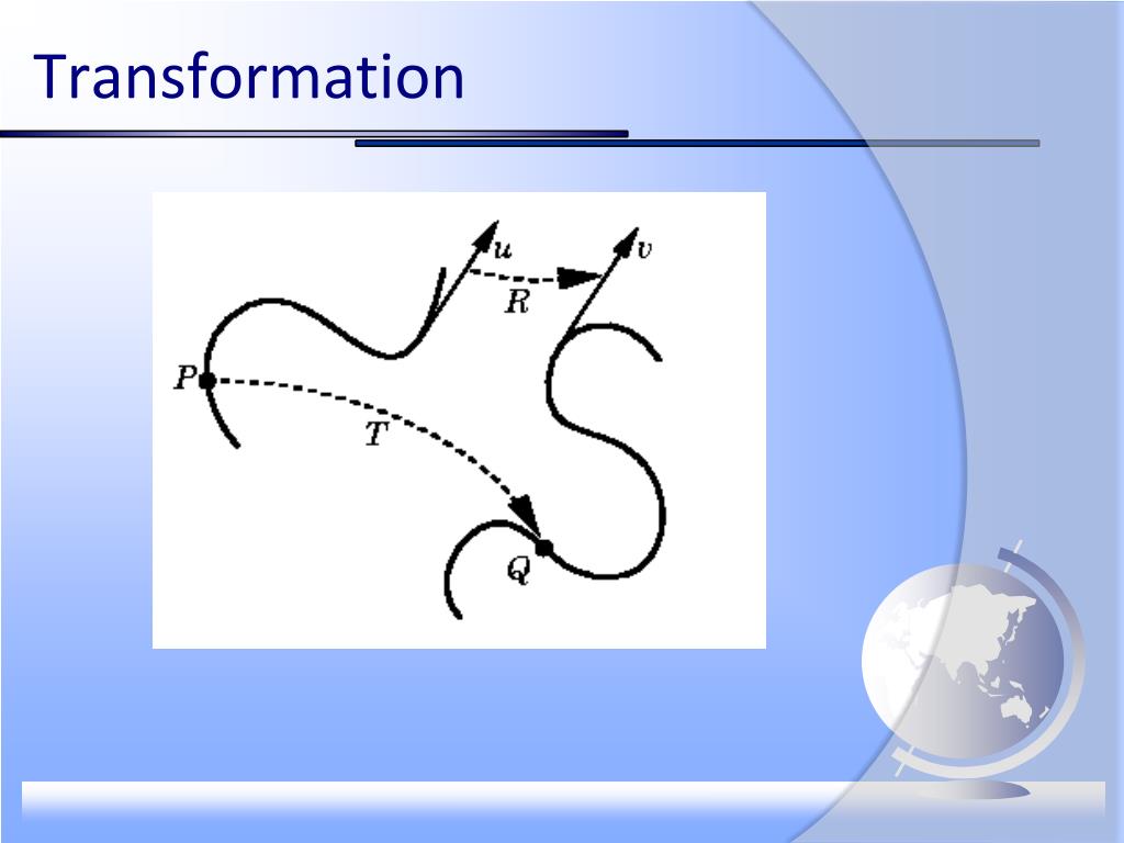 Mathematical View • Vector space: vectors and scalars • Operations • Scalar-vector multiplication • Vector-vector addition • Affine space: vector space + point • Vector-point addition (or point-point subtraction) • Euclidean space: affine space + measure of size or distance