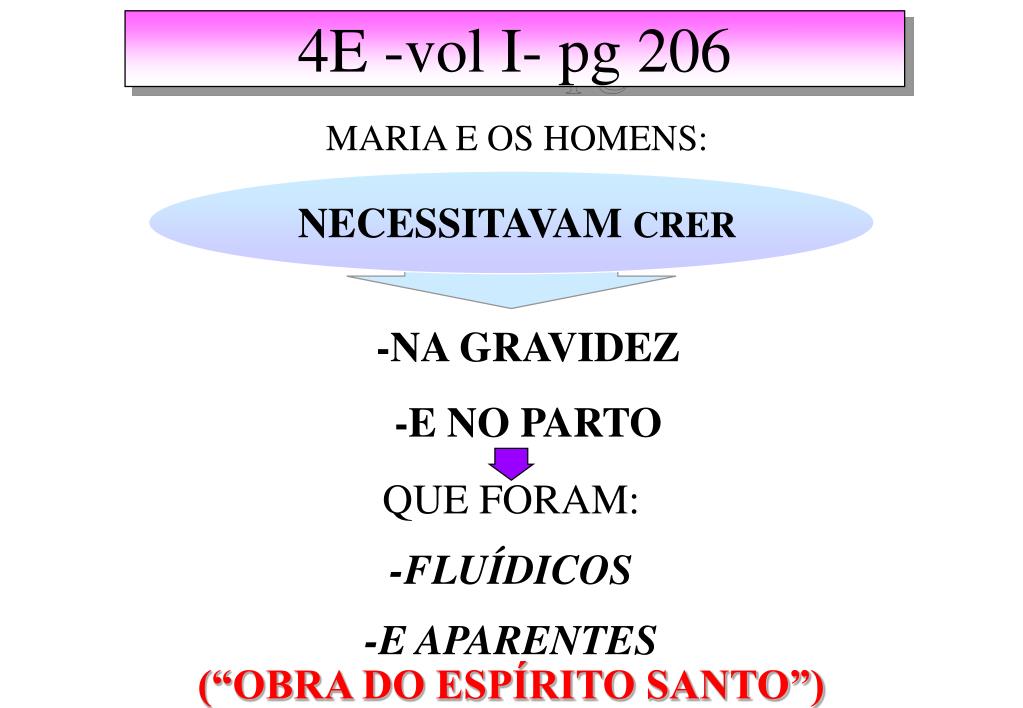 4E -vol I- pg 206 MARIA E OS HOMENS: NECESSITAVAM CRER -NA GRAVIDEZ -E NO PARTO QUE FORAM: -FLUÍDICOS -E APARENTES (“OBRA DO ESPÍRITO SANTO”)