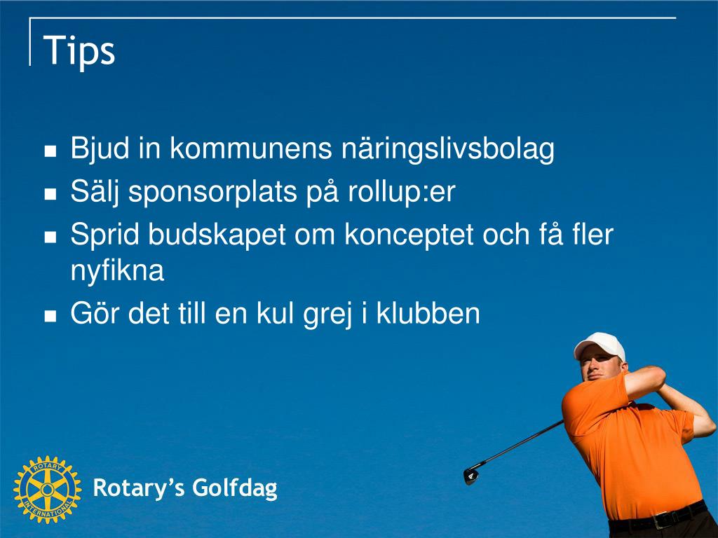 Rotarys Golfdag 30 maj 2011. Syfte. Skapa en årlig aktivitet för insamling till Rotary Foundation eller annat väldefinierat ändamål Inte konkurrerar med andra insamlingar (t ex Lions) Inte bara Rotarianer Ska vara så kul att man ser fram emot aktiviteten varje år