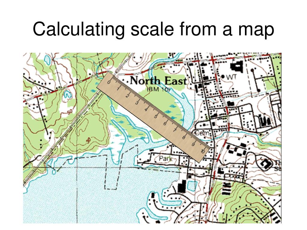 Known scale, calculate distances • Map distance = 300mm • Map scale = 1:50 000 • RF = MD / GD so GD = MD / RF • 1/RF is the denominator • GD = 300 mm x 50 000 = 15 000m
