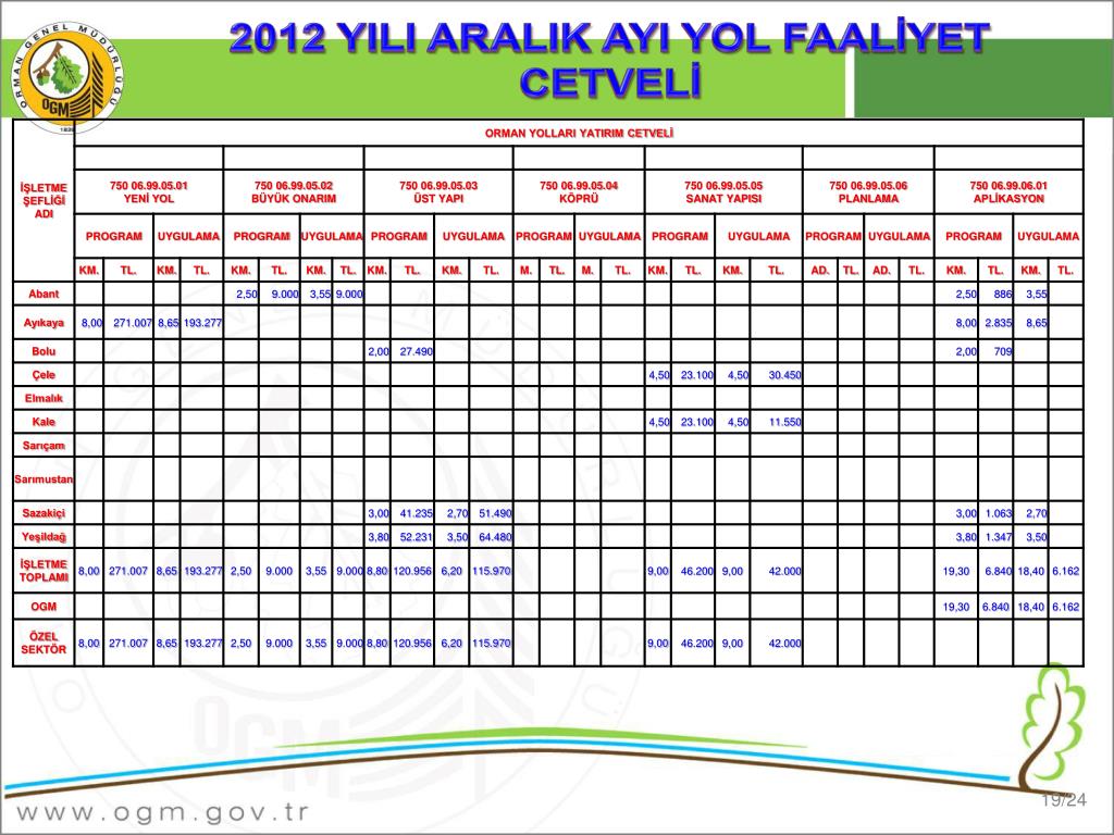 2012 YILI 3'ER AYLIK DÖNEM FAALİYETLERİ CETVELİ