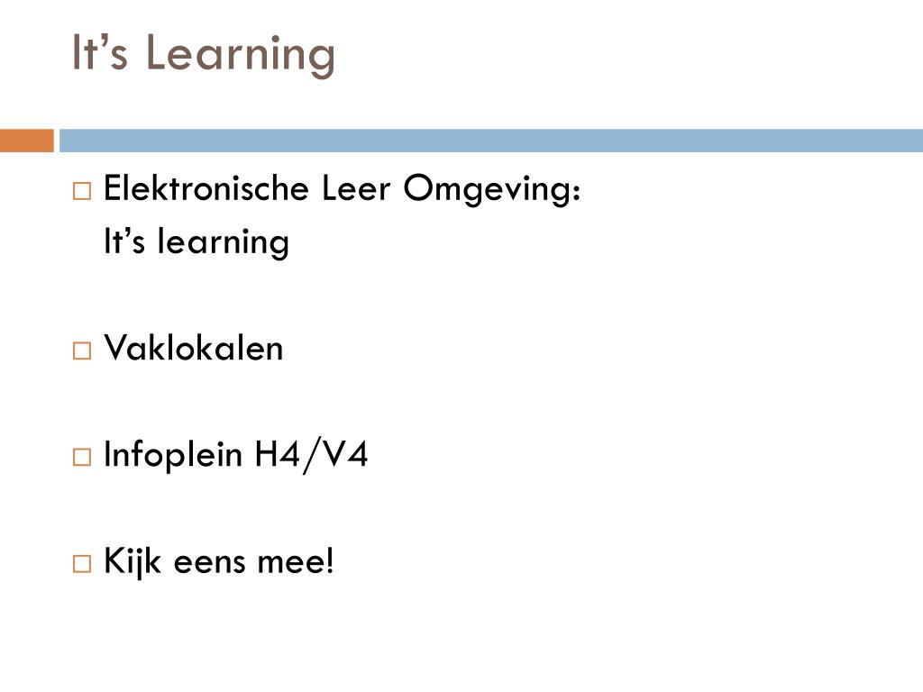 It’s Learning • Elektronische Leer Omgeving: It’s learning • Vaklokalen • Infoplein H4/V4 • Kijk eens mee!