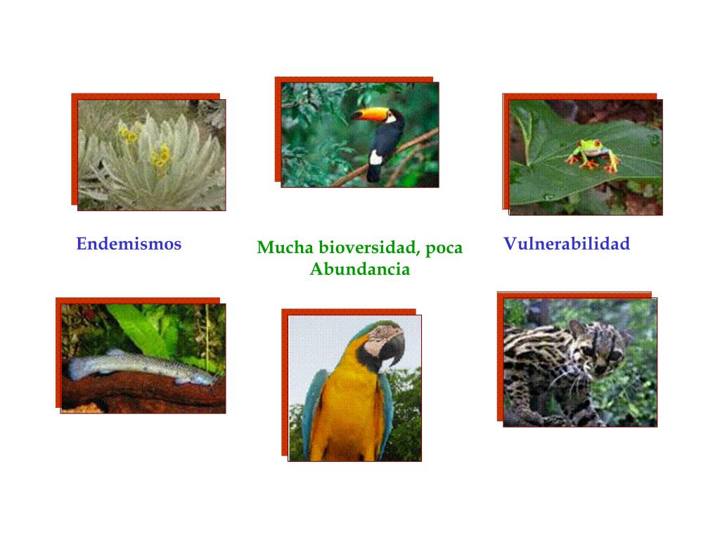 Endemismos Vulnerabilidad Mucha bioversidad, poca Abundancia