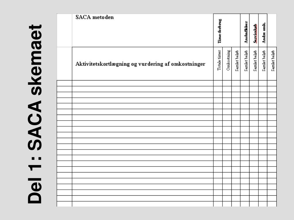 SACA metoden – Del 1 Ulykke Aktivitets- kortlægning Omkostnings- vurdering Total omkostninger