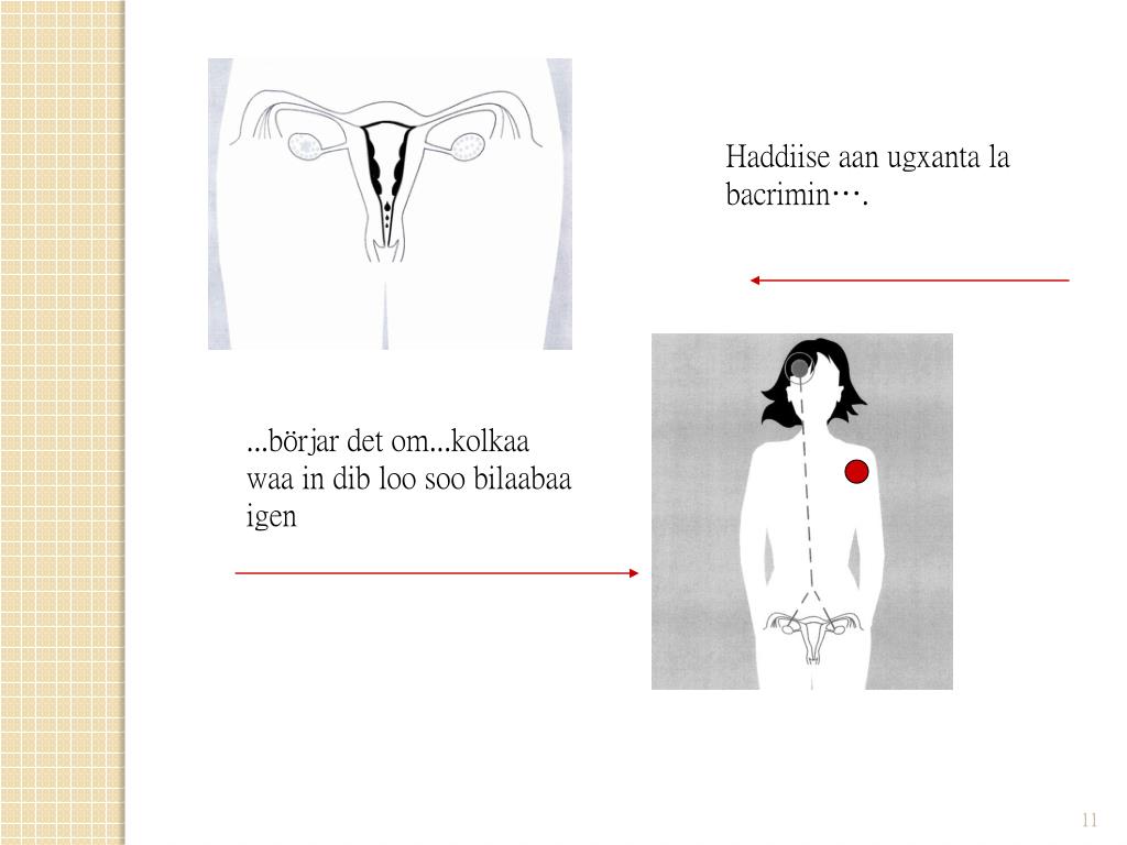 Xanuunada hoosta dumarka • Xanuuneysa agagaarka iyo gudaha hoosta dumarka ama luqunta ilmagaleenka • Haddii xanuunku soo noqnoqdo ama kordho, waa in la la xiriiraa dhakhtarka