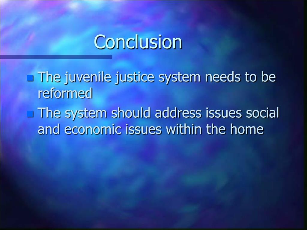 Conclusion • The juvenile justice system needs to be reformed • The system should address issues social and economic issues within the home