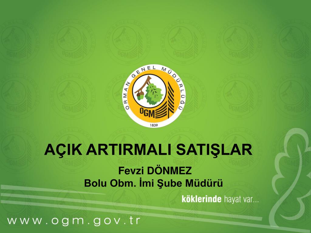 AÇIK ARTIRMALI SATIŞLAR. Fevzi DÖNMEZ Bolu Obm. İmi Şube Müdürü. AÇIK ARTIRMALI SATIŞLAR. Genel Müdürlüğümüze, Anayasa ve 3234 Sayılı Orman Genel Müdürlüğü Teşkilat ve Görevleri Hakkında Kanun ile verilen;