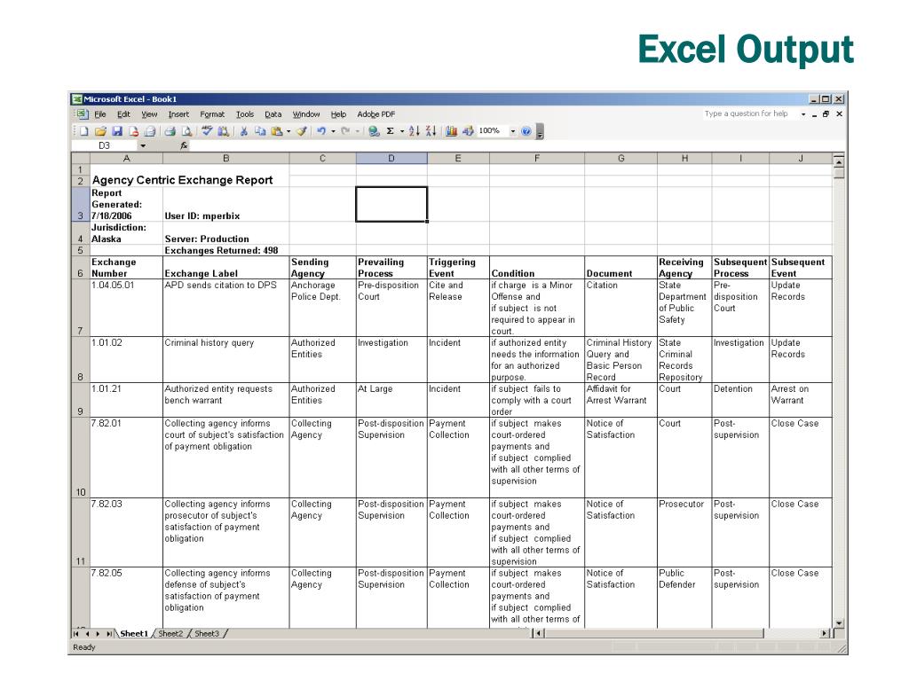 Event Decisions and actions that trigger information exchange • Arrest • Booking • Filing decision • Sentencing • Release from prison