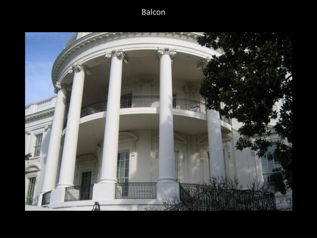 Visite de la maison blanche. Vue des jardins. Balcon. Ancienne salle de travail. Balcon Truman. Bibliothèque. Corridor du bureau. Antichambre. Bureau Présidentiel. Bureau ovale. Bureau du Vice Président. Cabinet des réunions. Chambre à coucher. Chambre de la « reine ».