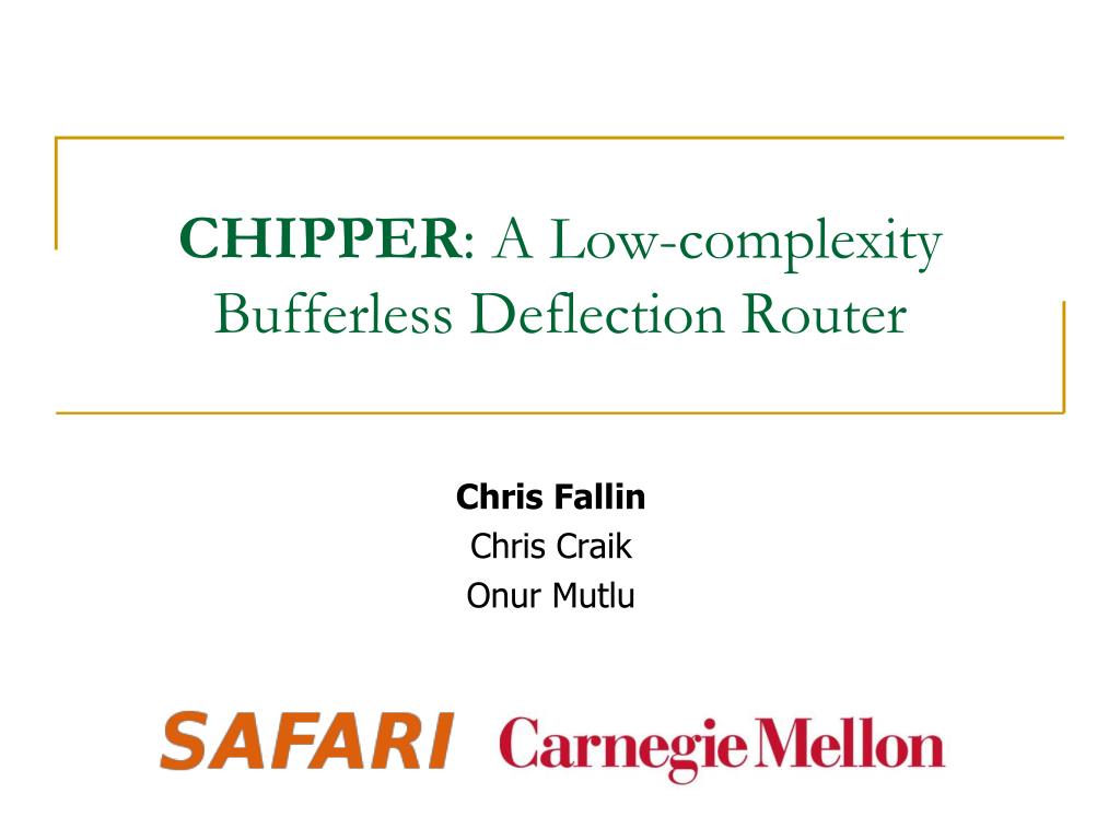 CHIPPER : A Low-complexity Bufferless Deflection Router. Chris Fallin Chris Craik Onur Mutlu. Motivation. In many-core chips, on-chip interconnect ( NoC ) consumes significant power . Intel Terascale : ~30%; MIT RAW : ~40% of system power