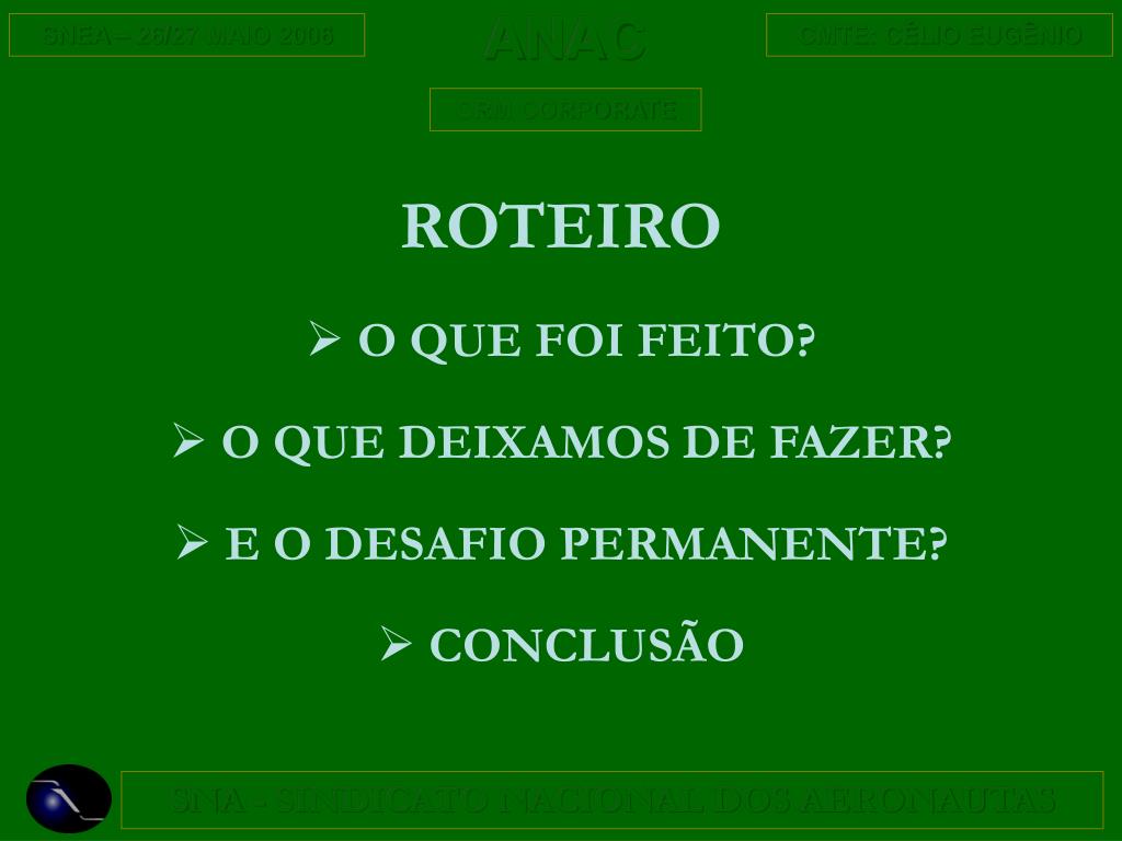 ROTEIRO • O QUE FOI FEITO? • O QUE DEIXAMOS DE FAZER? • E O DESAFIO PERMANENTE? • CONCLUSÃO