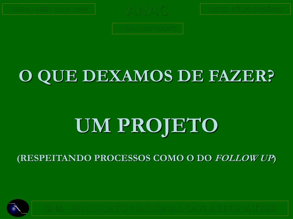 O QUE DEXAMOS DE FAZER? UM PROJETO (RESPEITANDO PROCESSOS COMO O DO FOLLOW UP)