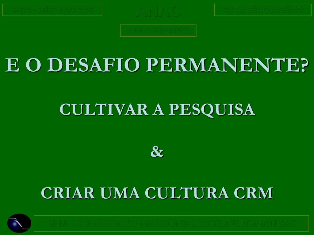 E O DESAFIO PERMANENTE? CULTIVAR A PESQUISA & CRIAR UMA CULTURA CRM