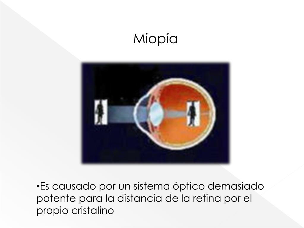 Miopía • Es causado por un sistema óptico demasiado potente para la distancia de la retina por el propio cristalino
