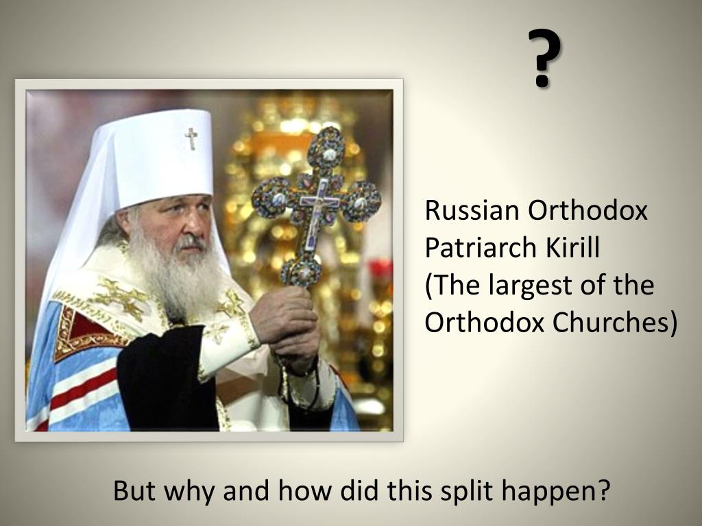 ? Russian Orthodox Patriarch Kirill (The largest of the Orthodox Churches) But why and how did this split happen?