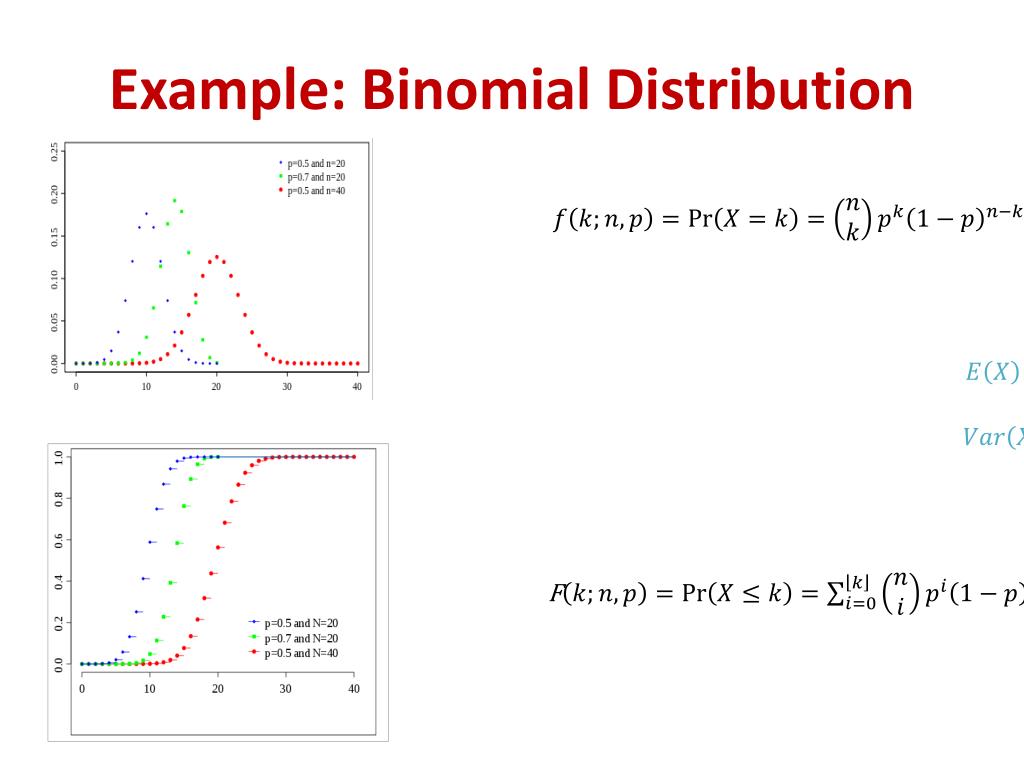 Characterizing a Probability Distribution • Probability mass function (Pmf): a function that describes the probability that a discrete random variable is equal to some value • Cumulative distribution function (cdf): a function that describes the probability that a random variable X assumes a value less than or equal to x F