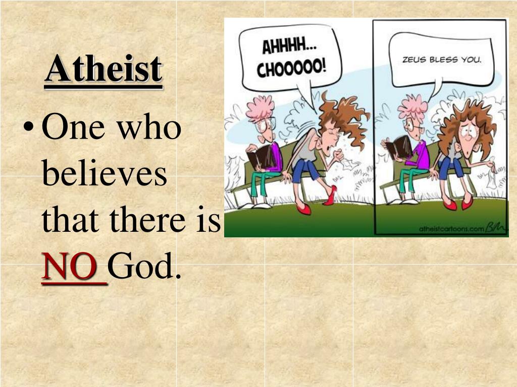 Atheist • One who believes that there is NO God.