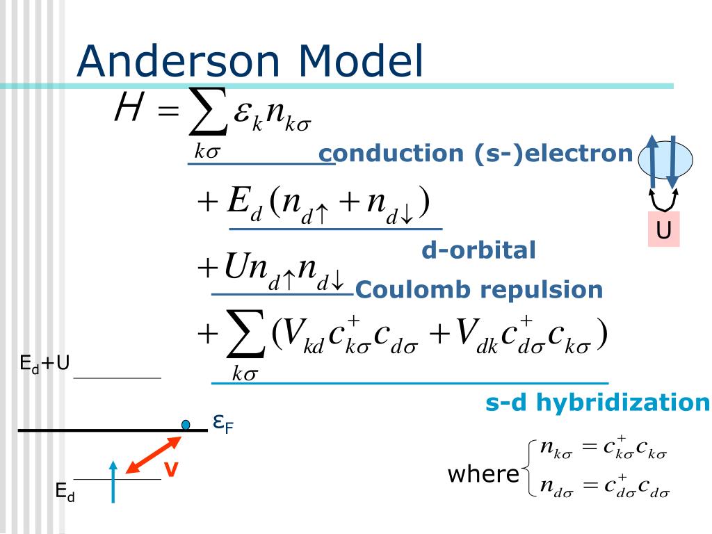 U Ed+U εF V where Ed Anderson Model conduction (s-)electron d-orbital Coulomb repulsion s-d hybridization