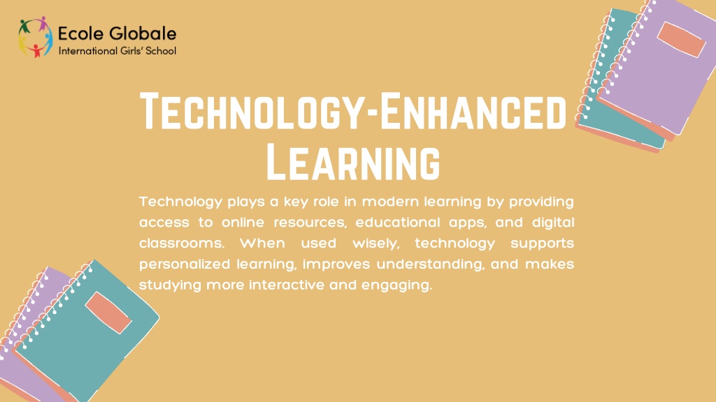 5. Technology-Enhanced Learning Technology plays a key role in modern learning by providing access to online resources, educational apps, and digital classrooms. When used wisely, technology supports personalized learning, improves understanding, and makes studying more interactive and engaging.