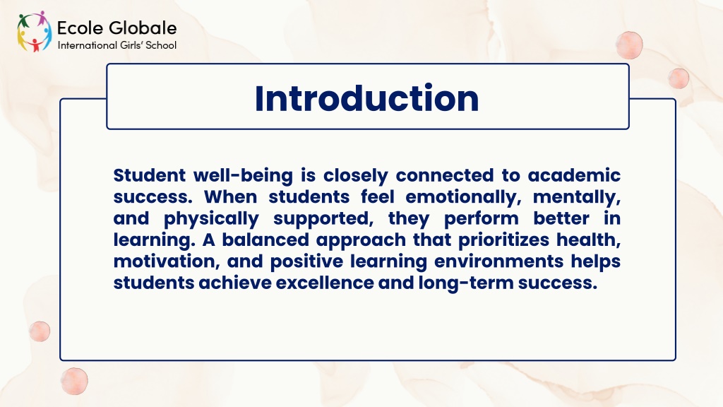 Introduction Student well-being is closely connected to academic success. When students feel emotionally, mentally, and physically supported, they perform better in learning. A balanced approach that prioritizes health, motivation, and positive learning environments helps students achieve excellence and long-term success.