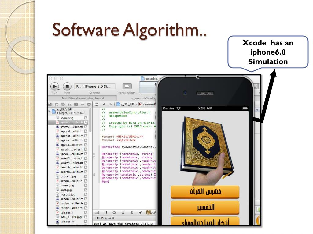 Software Algorithm.. Xcode has an iphone6.0 Simulation