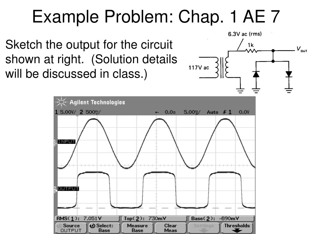 Example Problem: Chap. 1 AE 7 Sketch the output for the circuit shown at right. (Solution details will be discussed in class.)