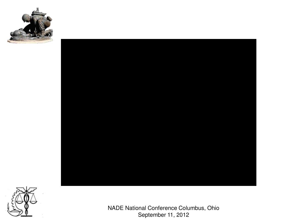 Navigating the System • “Wounds” are not obvious • “Warrior mentality” • Don’t want to be seen as “broken” • Survivor guilt NADE National Conference Columbus, Ohio September 11, 2012