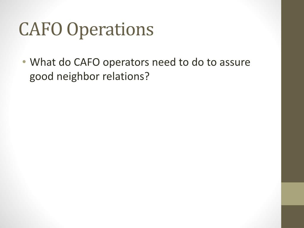 CAFO Operations • What do CAFO operators need to do to assure good neighbor relations?