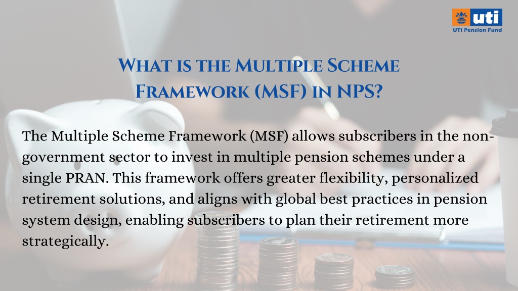 The Multiple Scheme Framework (MSF) allows subscribers in the non-government sector to invest in multiple pension schemes under a single PRAN. <br><br>To know more, <br>Visit - https://www.utipension.com/blog/multiple-scheme-framework-msf-nps-subscriber?utm_source=pdf&utm_medium=organic&utm_campaign=msf