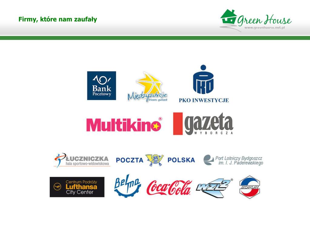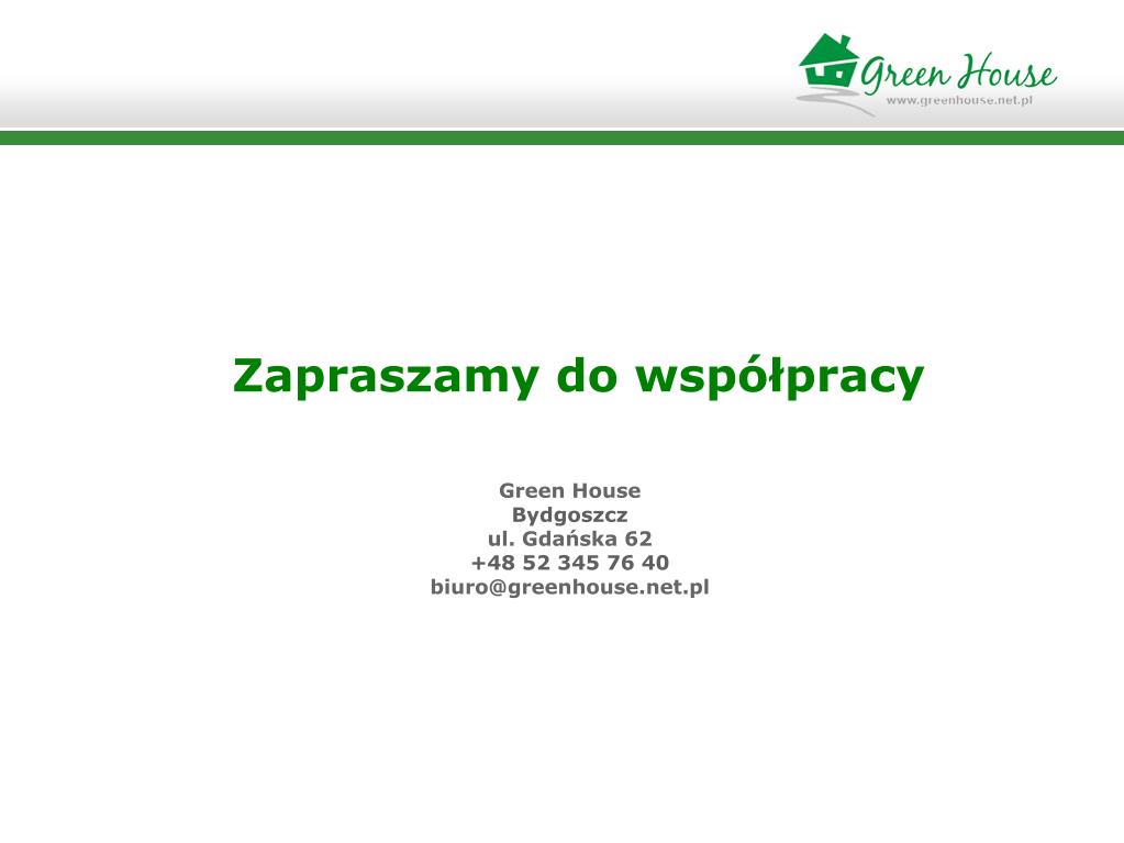 Zapraszamy do współpracy Green House Bydgoszcz ul. Gdańska 62 +48 52 345 76 40 biuro@greenhouse.net.pl