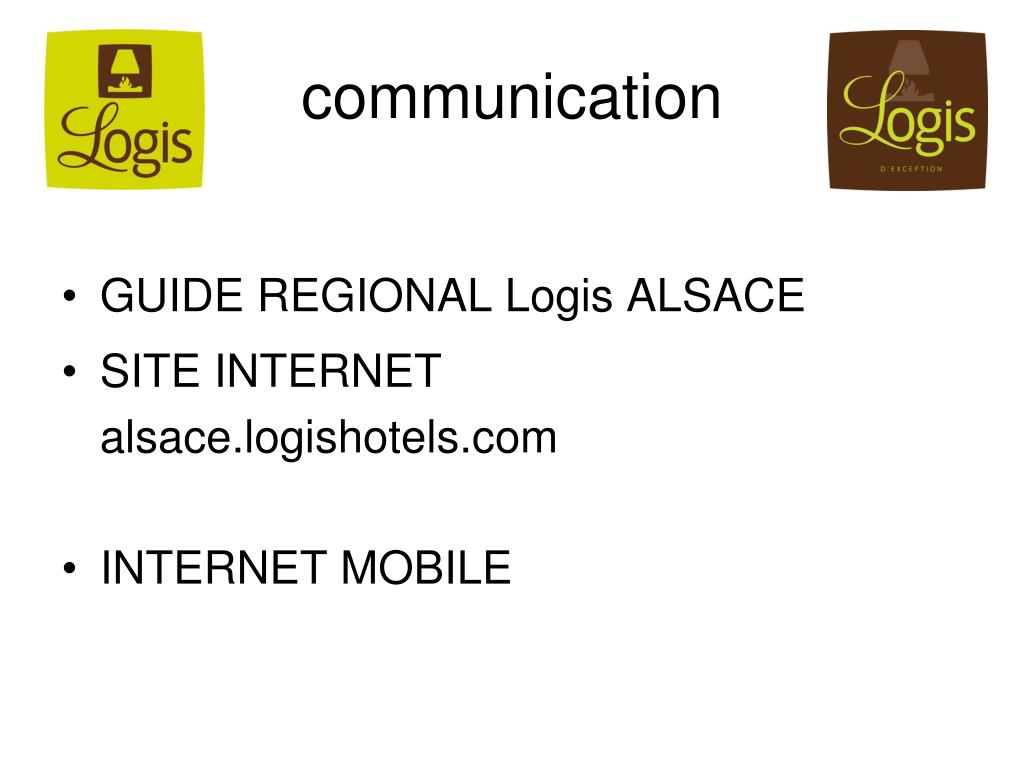 communication • GUIDE REGIONAL Logis ALSACE • SITE INTERNET alsace.logishotels.com • INTERNET MOBILE