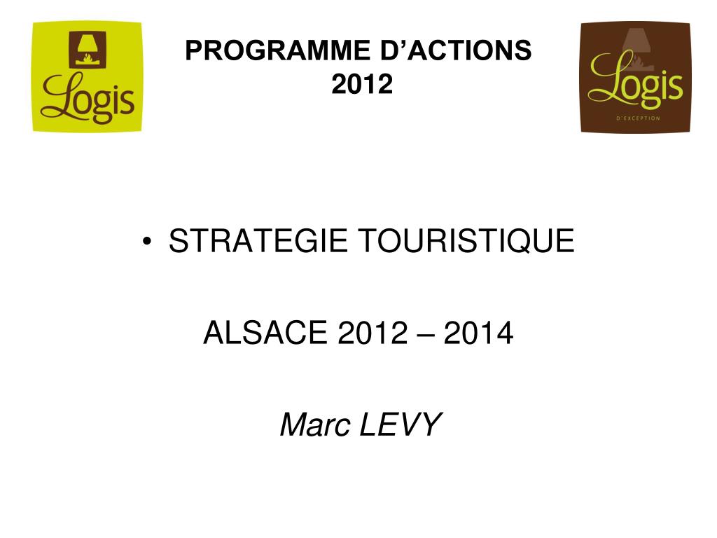 PROGRAMME D’ACTIONS 2012 • STRATEGIE TOURISTIQUE ALSACE 2012 – 2014 Marc LEVY