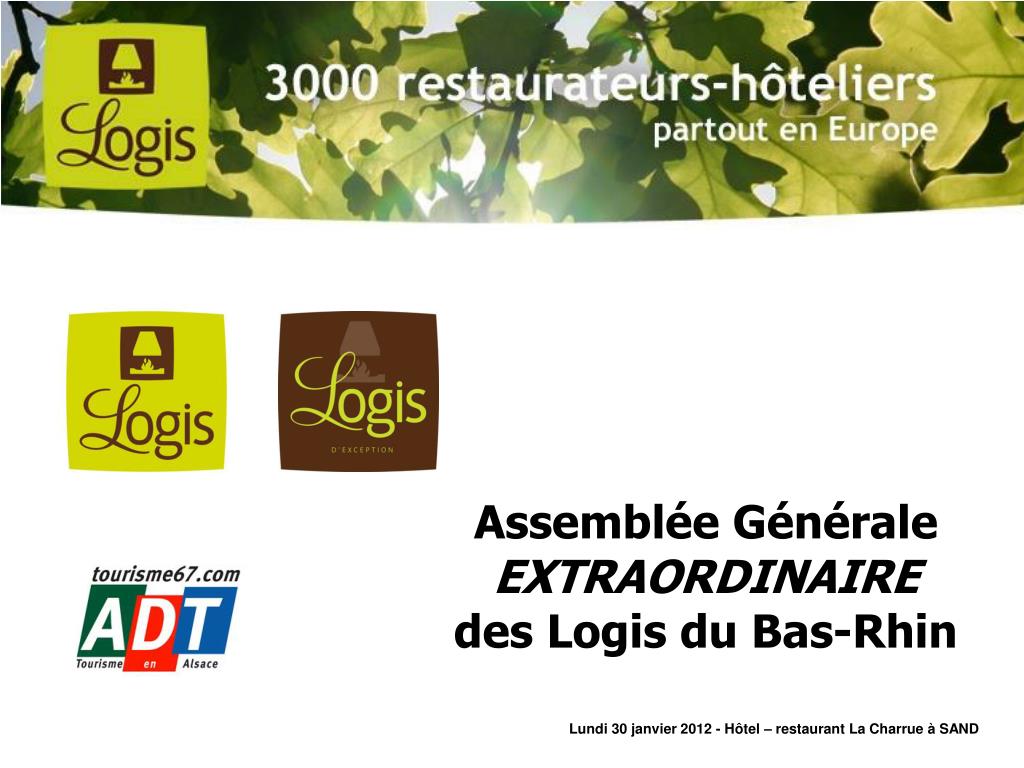 Assemblée Générale EXTRAORDINAIRE des Logis du Bas-Rhin Lundi 30 janvier 2012 - Hôtel – restaurant La Charrue à SAND