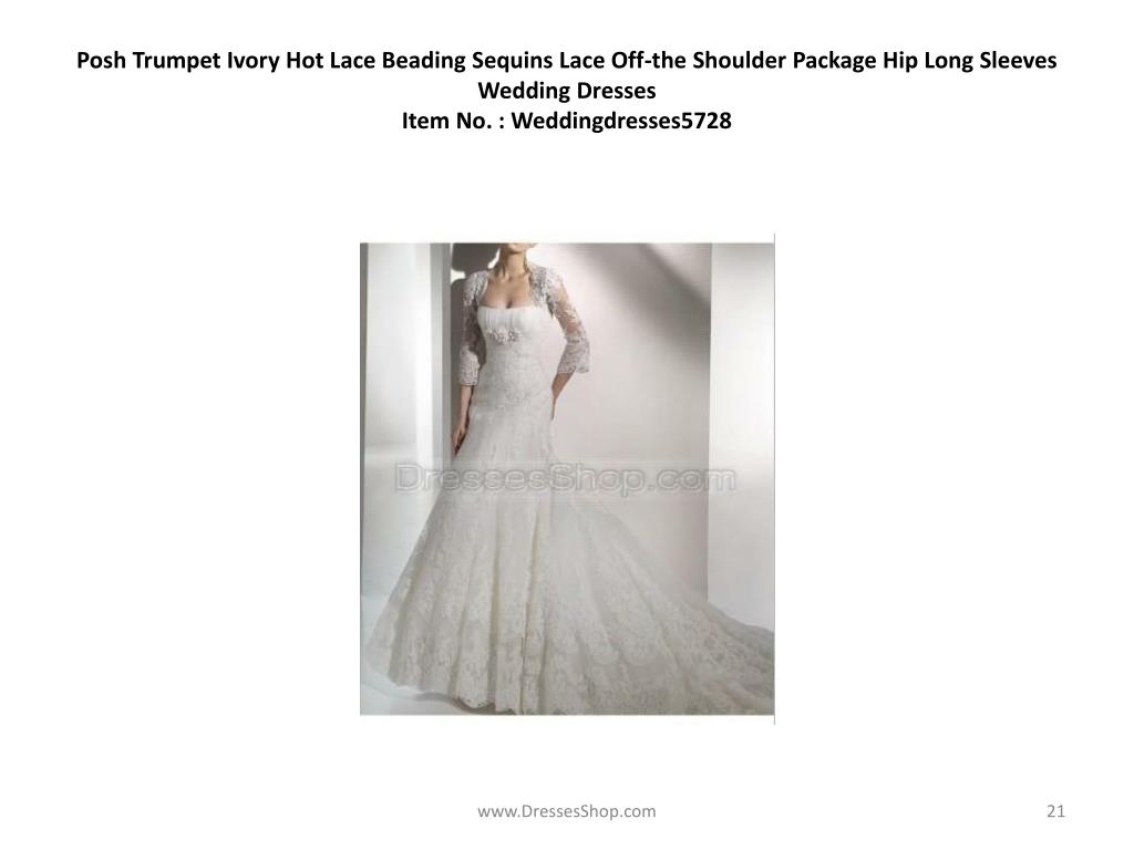Posh Trumpet Ivory Hot Lace Beading Sequins Lace Off-the Shoulder Package Hip Long Sleeves Wedding DressesItem No. : Weddingdresses5728 www.DressesShop.com