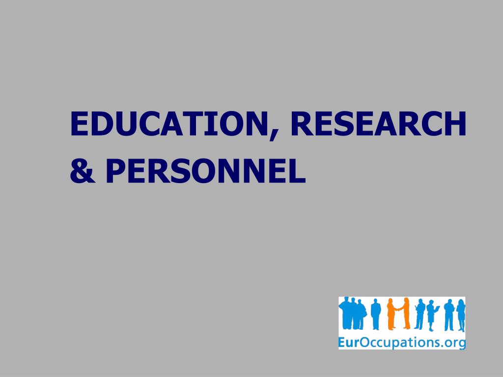Education, Research and Personnel include more professions than simple occupationsAre the first reductible to the seconds, or the occupation is additional and ulterior to the profession? - There are some cases of two kinds - Other professions are of second kind, but also include an occupation very general that keeps the name of the profession (as ‘psychologist’). - In other cases, a profession has two occupational dimensions, as the ‘researcher’ one.