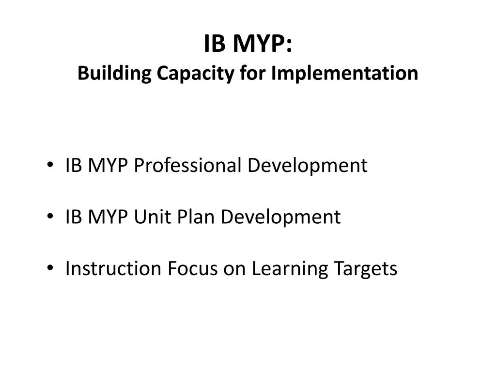 IB MYP: Building Capacity for Implementation • IB MYP Professional Development • IB MYP Unit Plan Development • Instruction Focus on Learning Targets