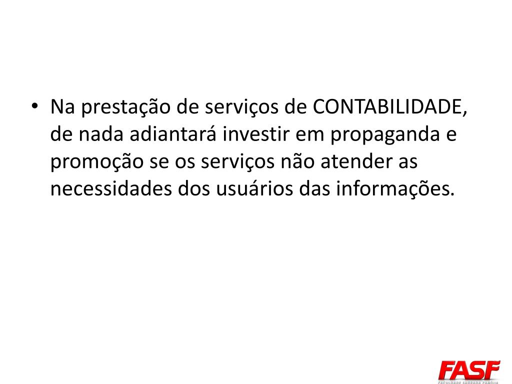 Na prestação de serviços de CONTABILIDADE, de nada adiantará investir em propaganda e promoçãose os serviços não atender as necessidades dos usuários das informações.