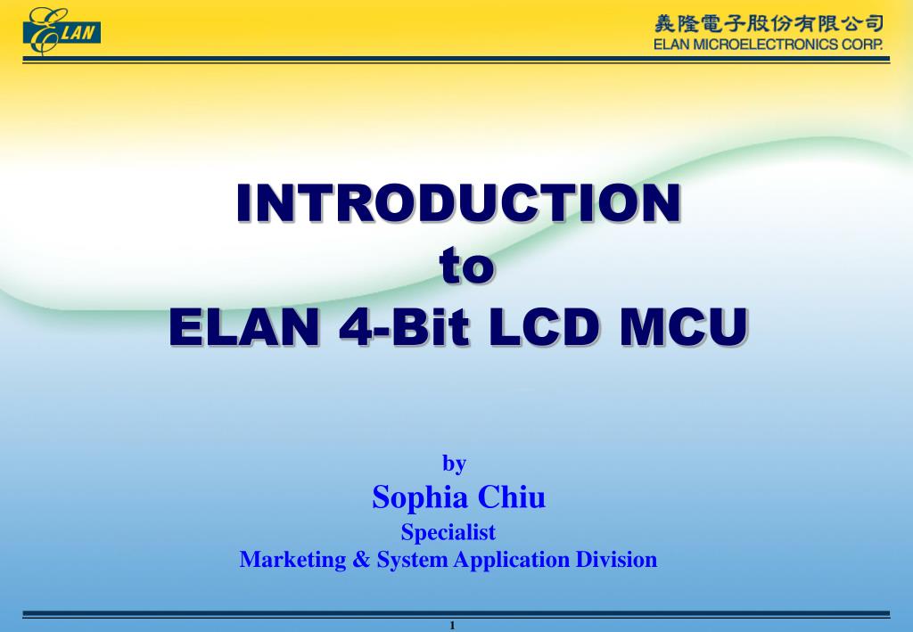 INTRODUCTION toELAN 4-Bit LCD MCU by Sophia Chiu Specialist Marketing & System Application Division