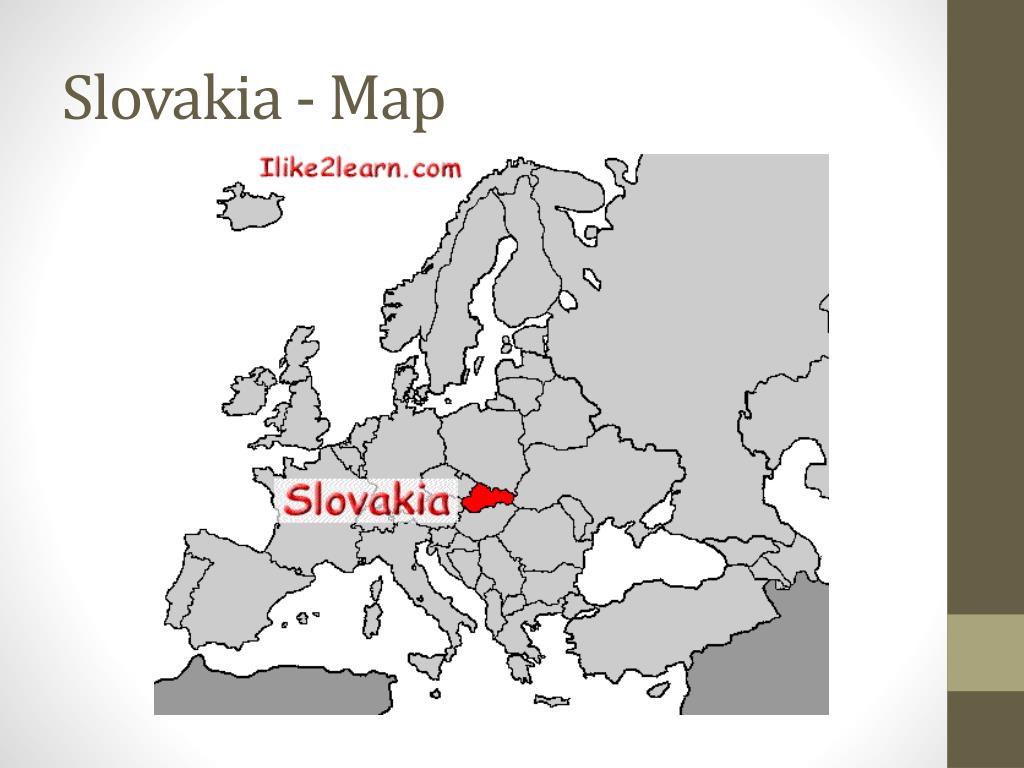 Slovakia Facts • Became a member of the European Union in 2004. • Officially became a country on January 1, 1993 after the disbandment of Czechoslovakia created two separate countries: The Czech Republic and Slovakia. • 5.4 million people reside in Slovakia. • Slovakia uses the Euro for their form of currency. • More mountainous than The Czech Republic and also has lower incomes.