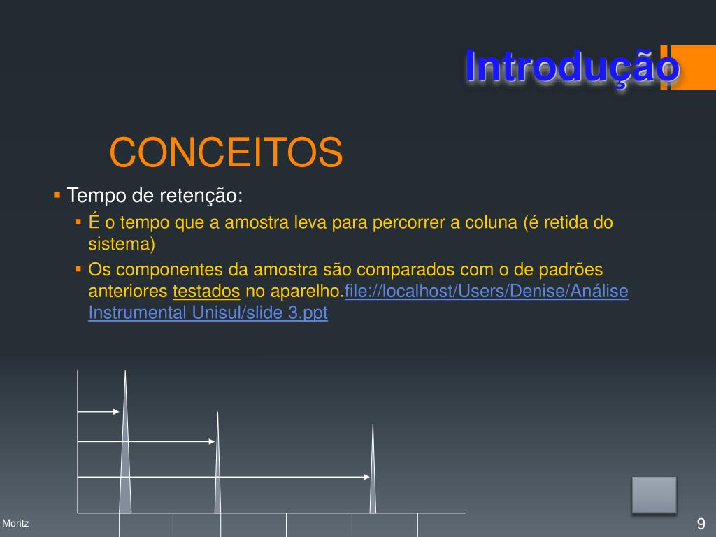 Introdução CONCEITOS • Tempo de retenção: • É o tempo que a amostralevaparapercorrer a coluna (éretida do sistema) • Oscomponentes da amostrasãocomparados com o de padrõesanteriorestestadosno aparelho.file://localhost/Users/Denise/Análise Instrumental Unisul/slide 3.ppt Profa. Denise Moritz