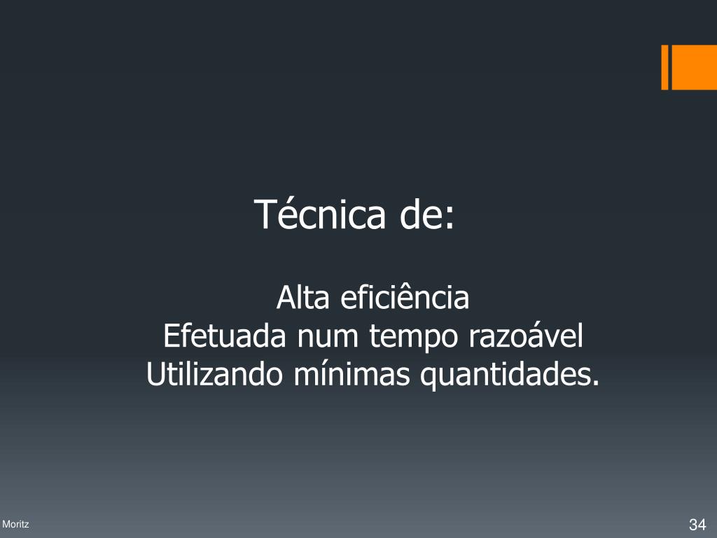 Técnica de: Alta eficiência Efetuada num tempo razoável Utilizando mínimas quantidades. Profa. Denise Moritz