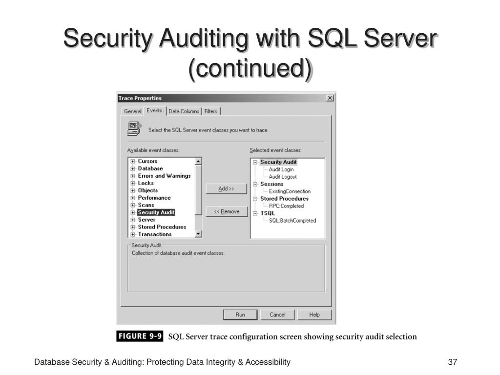 Implementing SQL Profiler (continued) Database Security & Auditing: Protecting Data Integrity & Accessibility