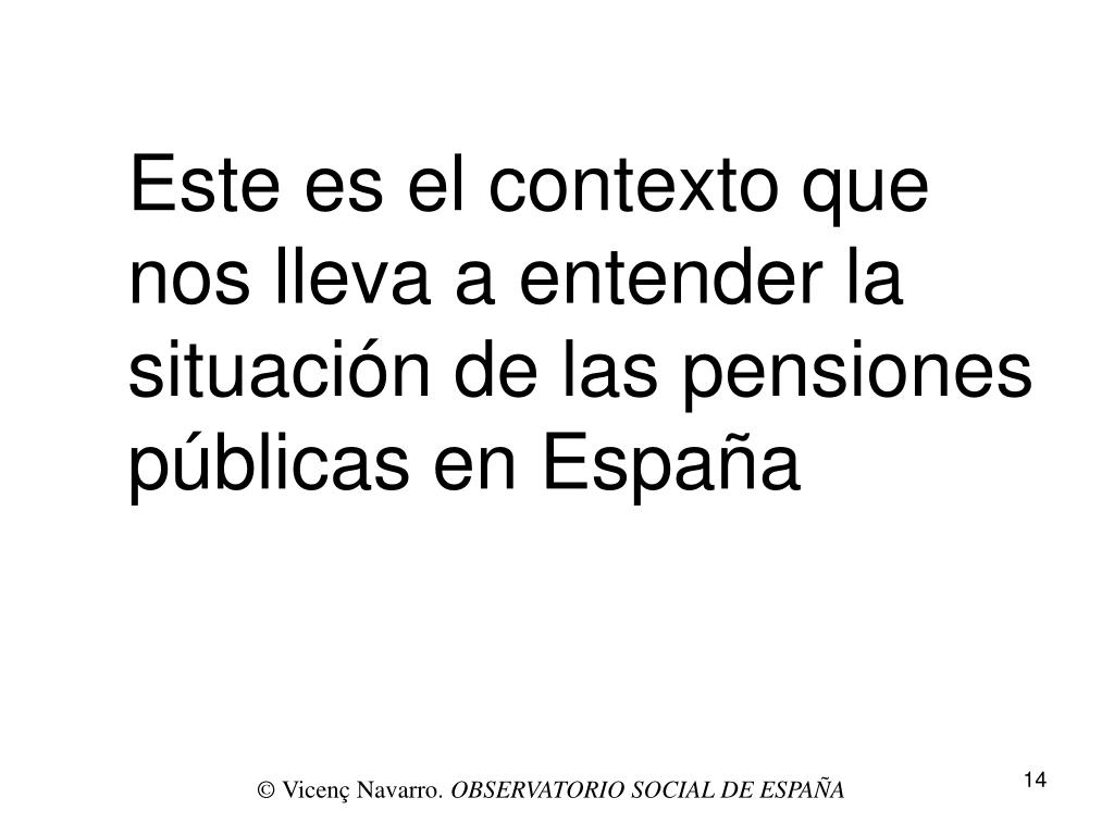 Este es el contexto que nos lleva a entender la situación de las pensiones públicas en España © Vicenç Navarro. OBSERVATORIO SOCIAL DE ESPAÑA