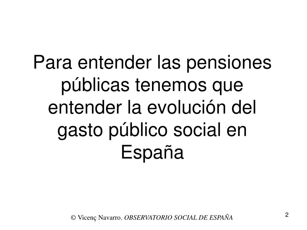 Para entender las pensiones públicas tenemos que entender la evolución del gasto público social en España © Vicenç Navarro. OBSERVATORIO SOCIAL DE ESPAÑA