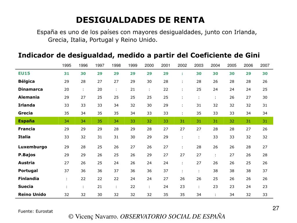 DESIGUALDADES DE RENTA España es uno de los países con mayores desigualdades, junto con Irlanda, Grecia, Italia, Portugal y Reino Unido. © Vicenç Navarro. OBSERVATORIO SOCIAL DE ESPAÑA